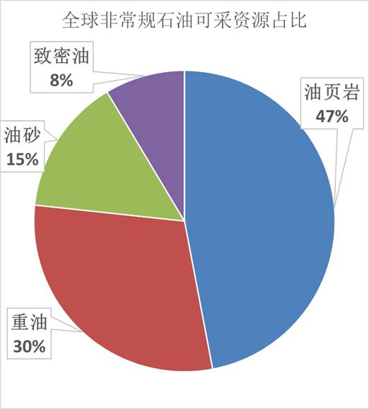 非常规石油当中,储量最大的为油页岩,占非常规石油总储量的47%。这种特别的石油资源主要分布在美国和俄罗斯,在我国的吉林省有丰富的储量,但其开采成本极高,目前全球范围内都没有广泛开采。
