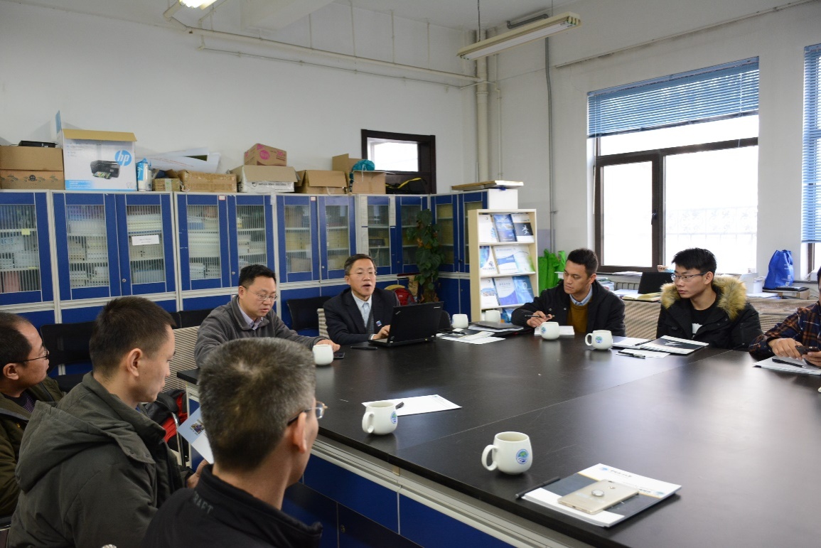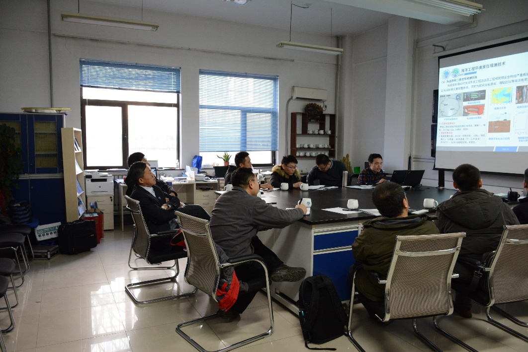 贾永刚教授首先代表实验室向各位参观的领导老师表示了欢迎。他表示,中科院地质与地球物理研究所是中国最知名的地学研究机构之一,与省重点实验室双方各有优势,互补性强,合作潜力巨大。此次调研组来到省重点实验室参观访问,希望双方加强学术交流,探讨未来的发展方向。随后由刘涛副教授向调研组介绍了省重点实验室的基本情况、郭秀军教授和郑敬宾副教授分别向调研组介绍了各自研究的海洋电法探测与海洋桩基础设计的相关情况。最后,省重点实验室主任贾永刚教授汇报了海洋工程动力地质作用勘测与监测技术。