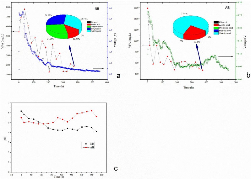 研究还发现,采用水解-发酵两阶段预处理技术对剩余污泥进行处理后,可以产生大量的挥发性有机酸(VFAs),其可以作为微生物燃料电池(MFC)的良好底物,同时对MFC的产电效能及产电微生物的富集具有很好的促进作用。