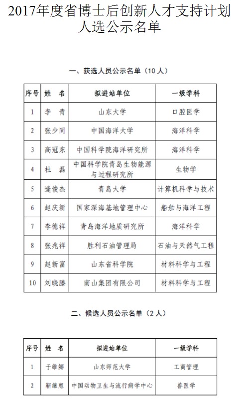 2018年5月9日,山东省人力资源与社会保障厅发布《关于2017年度省博士后创新人才支持计划人选的公示》经各推荐单位推荐、同行专家评审等程序,确定2017年度省博士后创新人才支持计划获选人员10人、候选人员2人。开云电竞网址山东省海洋环境地质工程重点实验室张少同博士成功入选 “2017年度山东省博士后创新人才支持计划”,总排名第二,学科(海洋科学)排名第一。