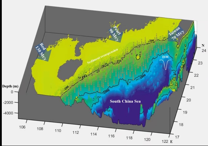 内孤立波是一种特殊的非线性内波,广泛分布在全球海洋中,中国南海为世界最大振幅内孤立波发生的海域。内孤立波可引起海水与海底之间显著的相互作用,是浅水和深水环境中沉积物再悬浮的有效成因,并对生态和地质过程产生重要影响。