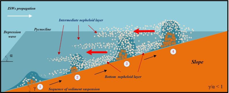 浅化内孤立波在陆坡悬浮沉积物示意图