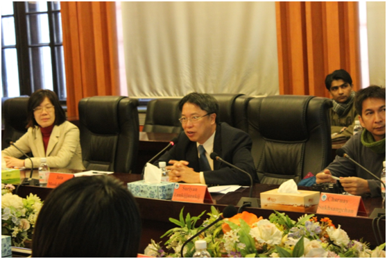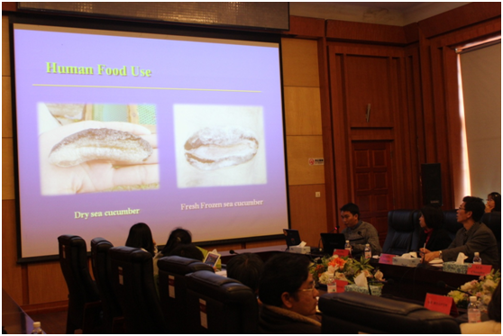 2014年12月5日上午,泰国农业大学水产学院院长SuriyanTunkijjanukij教授带领该院5位教师及泰国农业部水产部门2名官员来访开云电竞网址食品科学与工程学院,双方在鱼山校区胜利楼一楼会议厅举办了“中-泰”国际合作项目-“海参养殖与加工技术”研讨会。食品科学与工程学院院长薛长湖教授、副院长牟海津教授、王富龙主任、梁兴国教授、张朝辉教授、院外事办主任唐庆娟副教授、赵雪副教授、董士远副教授,水产学院曾晓起教授,泰国留学生Miss Jitima Suwanmala和学生代表武娟、张琪、路上云、刘芳、石红杰等出席了本次研讨会。