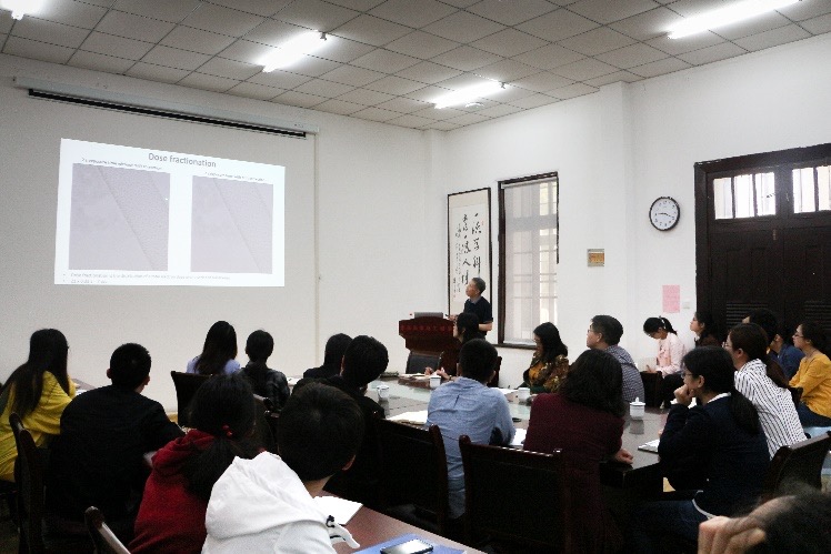 李宗利博士为食品科学与工程学院师生做了“Electron cryo-microscopy (cryoEM) development and its applications in three dimensional structural studies of proteins and protein assemblies”专题学术报告。在本次报告中,李博士对冷冻电镜技术进行了系统介绍并分享了其最新研究成果,深入介绍了冷冻电镜的基本原理、发展历程以及在结构生物学方面的主要应用,围绕单颗粒冷冻电镜技术解析小鼠mTRPC4离子通道蛋白的结构展开了丰富讲解。报告吸引了我院师生们的广泛兴趣,报告会后师生们与李博士开展了长达一个小时的热烈交流和讨论,此次报告激发了我院师生的科研思维和创新意识。