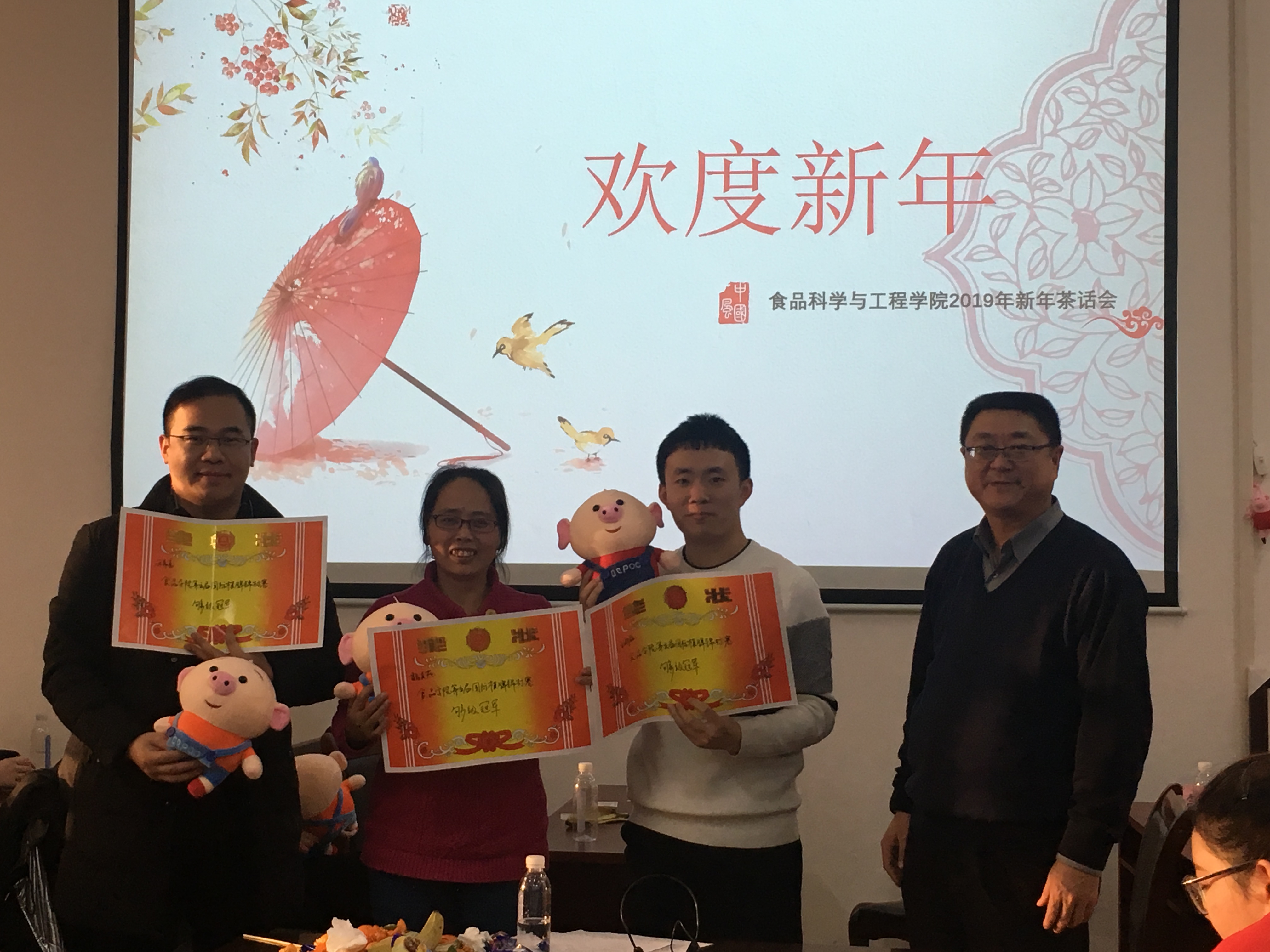 瑞狗辞旧岁,金猪迎新春。1月12日,食品科学与工程学院教职工2019迎新春联欢会在六二楼104会议室举行。学院领导、教职工们欢聚一堂,共庆新春。