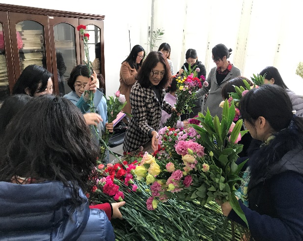 2个小时的登山后,我们的“女神节”系列活动精彩还在继续,回到学院后大家又投身一片浩瀚花海,一起动手选花、插花、谈花,各显手艺,让每一朵娇艳的花在老师们手中绽放更绚丽的光彩。