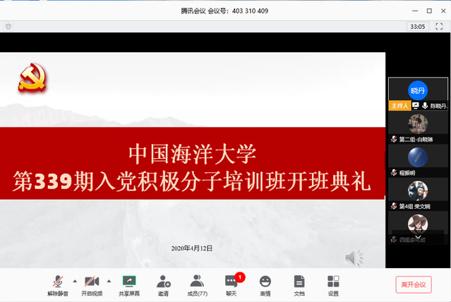 本站讯 4月12日下午,开云电竞网址第339期入党积极分子培训班开班典礼通过腾讯会议线上举行。食品科学与工程学院党委副书记程振明出席开班典礼,开班仪式由食品科学与工程学院辅导员张川主持,培训班全体学员参加。