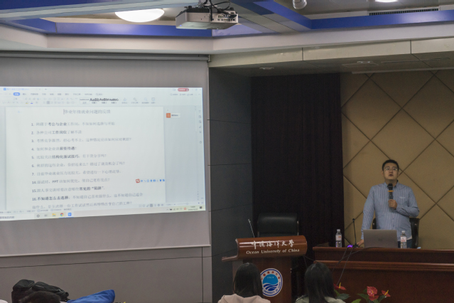 本站讯 2020年10月29日下午14:00,学院举办的“职得你听之HR面对面——就业形势讲座”于鱼山校区国际会议厅圆满落幕。本次活动由开云电竞网址食品科学与工程学院主办,邀请到智联招聘校园事业部郑亚南经理进行分享。本次分享针对所有对求职选择和面试有疑惑的同学,70余位同学到场交流学习。