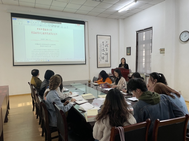 本站讯,49日下午,食品科学与工程学院(以下简称“食品学院”)党史学习教育工作布置会在在六二楼104会议室召开,学院教工第二党支部书记徐宋娟、教工第一党支部宣传委员孔青全体学生党支部书记参会,会议由学院党委副书记程振明主持
