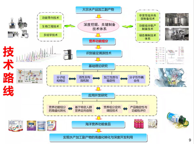 海洋生物活性物质实验室主要致力于海洋生物功能分子结构与活性研究、水产品加工副产物高值化利用技术集成研究及产业化示范。主要分为三个研究方向:1.海洋资源中的功能蛋白、多糖、多酚等生物功能分子的精细结构解析、分子营养和定量构效关系研究;2.海洋功能分子高效分离制备关键技术、高值化利用与转化技术;3.基于海洋生物活性物质的创新开发,实现绿色化、智能化、标准化、产业化示范。科研团队主持和承担国家级及省部级课题80余项,发表论文500余篇,其中SCI收录200余篇,申请/授权国家发明专利80余项。建立海洋功能组分的规模化生产线10余条,实现了水产品加工技术的出口,获得国家科技进步二等奖、海洋科学技术一等奖、山东省科技进步一等奖等各类科技奖励10余项。