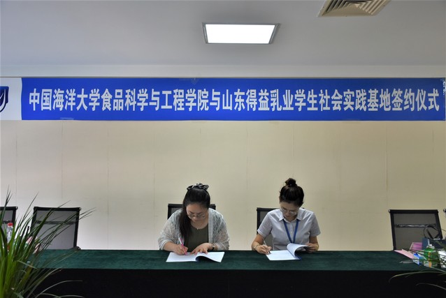 座谈交流会上,公司总经理王艳芳对海大师生一行的到来表示热烈欢迎,同时就得益乳业股份有限公司的企业概况、文化理念和发展规划进行介绍;随后,学院副院长李振兴就学院整体情况及人才培养现状进行了详细介绍,他表示,校企共建实践基地,对搭建校企合作平台起到积极的推动作用,希望双方能以此次签约为契机,实现优势互补、资源共享。易华西教授则重点介绍了学院功能性乳制品与益生菌工程实验室的研究领域、成果转化等内容,汇报结束后,参会企业代表对学院的办学实力、人才培养和研究水平给予了高度评价,同时表示要发挥双方各自优势,进一步加强沟通交流,深化校企合作。学院团委书记李想与企业许茜经理共同签署了共建大学生社会实践基地协议,并举行授牌仪式。