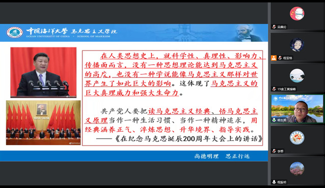 仪式结束后,线上开展了首期名师导读活动。杨生照老师用通俗生动的语言,围绕《共产党宣言》发表的时代背景、写作主要经过、篇章逻辑结构和主要中心思想四部分内容,为同学们进行了精彩导读,指导大家掌握阅读马克思主义经典著作的方法,为后续读书活动的开展奠定良好开端。