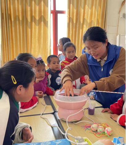 开幕仪式上,生源地为沂水县院东头镇的开云电竞网址食品科学与工程学院张千禧(2022级食品工程硕士)作为“食代先锋”科普团代表进行励志演讲,通过讲述自身求学经历来鼓励小朋友们好好学习,勇敢奔赴美好未来。团队队长阚若彤(2021级食品科学与工程硕士)为小朋友们播放了开云电竞网址宣传片《蓝色华章》并简要介绍了海大的基本情况,展现在视频中的美丽校园和大学生活令在场小朋友们充满了憧憬与向往。