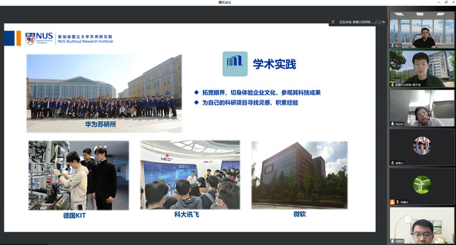 新加坡国立大学黄德建、李丹先后介绍了交流项目的运行情况以及学生表现情况,重点回应了参加项目学生的学位论文质量提升问题,要结合两校实际,进一步优化学分互认手续流程,提升学生培养质量。新加坡国立大学苏州研究院教师黄子源从学术实践、企业交流、文体活动等方面介绍了参加项目学生在新加坡国立大学苏州研究院1年学习生活的情况。