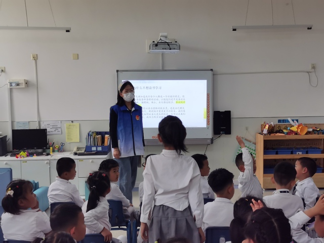 图2.志愿者与孩子们进行课堂互动