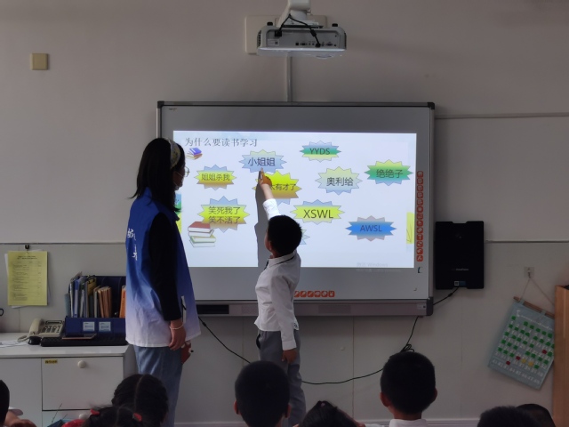 图5.志愿者与学生进行课堂互动