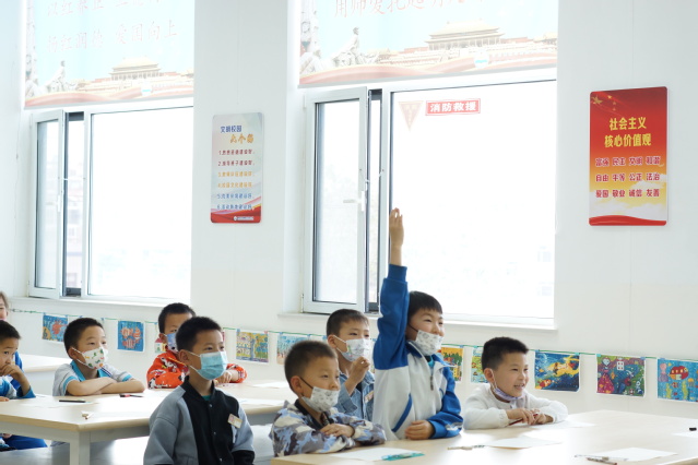图4.志愿者为学生介绍黑龙江的红色故事