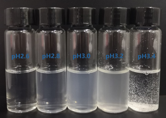 图1 OVT–CMCS纳米颗粒在不同pH值下的视觉观察