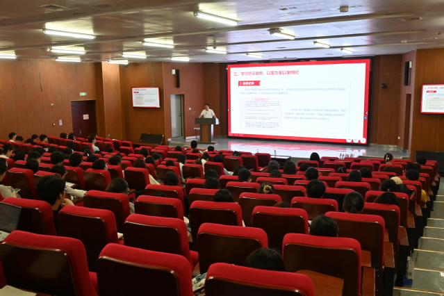 本站讯 深入学习贯彻习近平总书记关于加强党的纪律教育的重要论述,推动党纪学习教育入脑入心走深走实,引导广大师生党员做到学纪、知纪、明纪、守纪,2024年6月6日,食品科学与工程学院党委书记于德华在食工楼B01学术报告厅为师生党员讲授了题为《学纪正风强党性担当作为建新功》的专题党课,学院党员代表、第六期青马班学员及学生骨干近200人参加会议。
