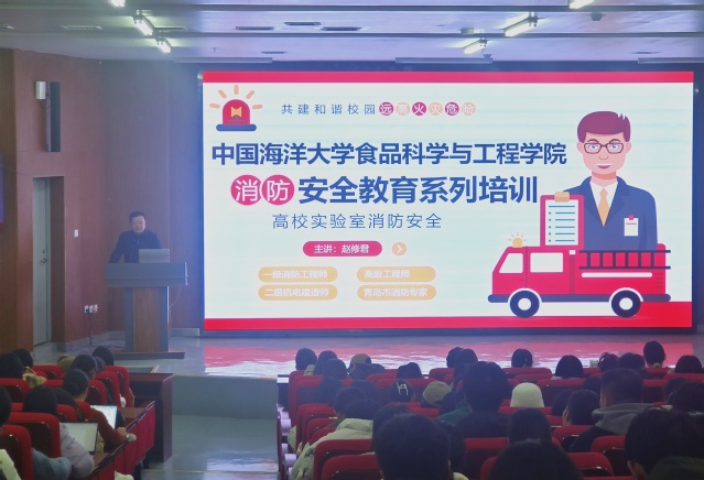 演练活动首先进行了消防安全教育培训,讲座特邀青岛市消防专家赵修君担任主讲人。通过一个个典型火灾案例,结合实验室常见风险,专家详细讲解了常见火灾隐患、火灾预防措施、消防器材选择使用及应对方法等消防安全内容。