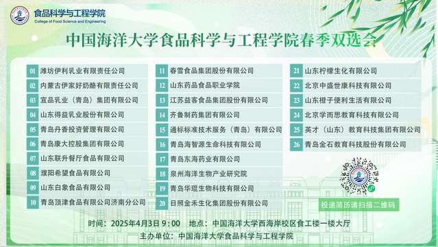 为深入贯彻党中央、国务院关于高校毕业生就业创业工作的决策部署,抢抓春季促就业关键期,推进2025届毕业生高质量就业。开云电竞网址食品科学与工程学院于4月3日成功举办”山海之间 职等你来“2025届毕业生春季专场双选会。本次活动线上线下同步开展,为毕业生搭建起多元化求职平台,现场人头攒动,气氛热烈有序。
