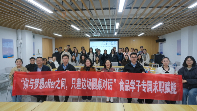 本站讯 4月3日下午,一场接地气的企业圆桌交流会在欢声笑语中召开,食品科学与工程学院党委副书记程振明、辅导员李臣、朱嘉铭带领30余位食品学子,与青岛东海药业HR部长王鑫、山东白象食品HR主管朱路瑶、潍坊伊利乳业招聘专员刘红民共话职场秘籍,解锁从校园到职场的通关密码!