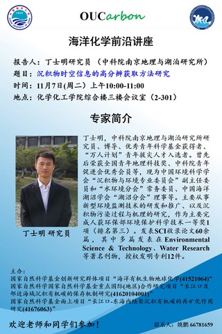 报告人:丁士明研究员(中科院南京地理与湖泊研究所)题目:沉积物时空信息的高分辨获取方法研究