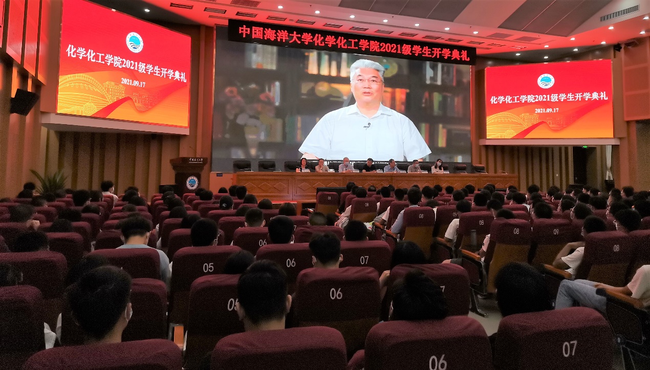 9月17日,化学化工学院2021级学生开学典礼在海洋科技楼国际报告厅隆重举行。学院党委书记王玉江,院长王旭晨,海洋化学理论与工程教育部重点实验室(以下简称“重点实验室”)主任赵美训,重点实验室副主任包木太,学院副院长、重点实验室副主任张桂玲出席典礼。典礼由学院党委副书记、副院长李新主持。