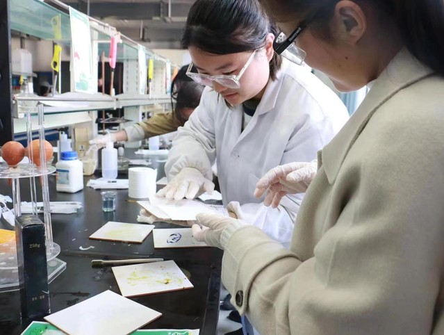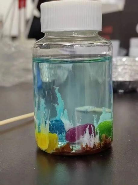 活动第二项,由志愿者同学现场演示并讲解有趣的化学科学实验,分别是黄金雨、水中花园、焰色反应、信纸上的秘密、可乐变雪碧和叶脉书签。活动现场气氛热烈,同学们在观看精彩展示和原理解说的同时纷纷亲自动手,体验实验操作和化学游戏的乐趣,观察美丽的实验现象。