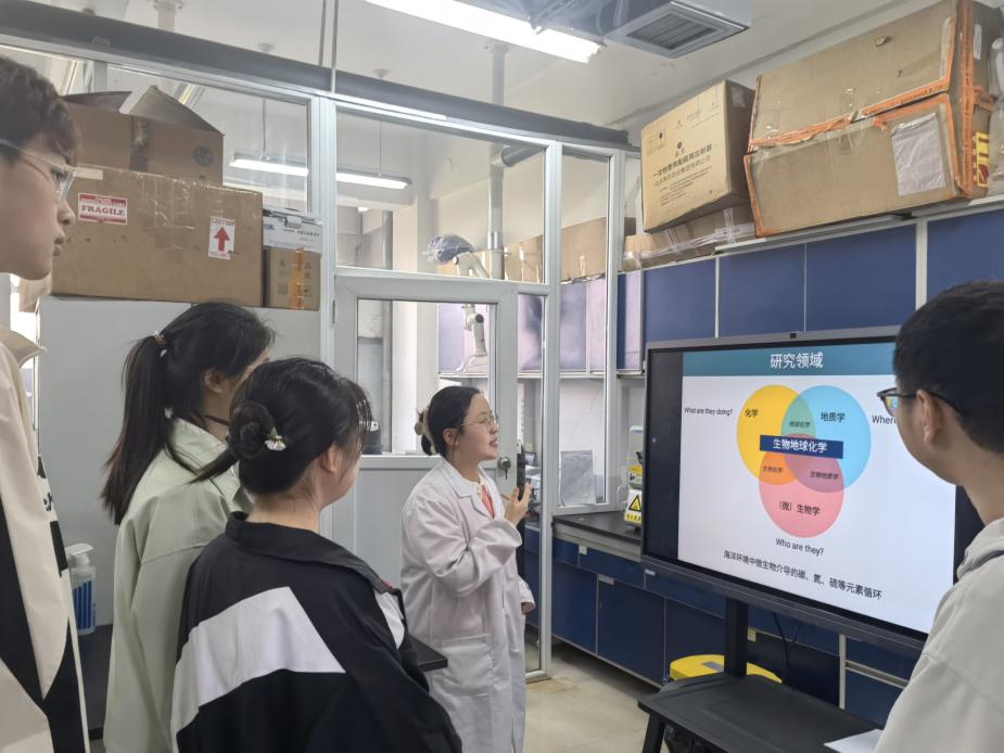 此次走进海洋界面化学实验室、海洋生物地球化学实验室II、环境友好型海洋功能材料与防护技术、环境生物物理化学实验室、深海微生物地球化学实验室、电转换实验室6个实验室,学生近距离了解学科特色,感受科学的魅力。