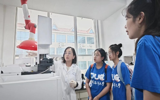 研究院工作人员为队员介绍检测仪器