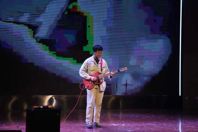 本次晚会共分为三大华章,凸显了“化韵华章”之魅力。这是一个不可错过的难忘之夜,为师生们带来了无尽的欢乐与感动。晚会伊始,由师浩楠同学带来的《海阔天空》电吉他演奏牵动了在场观众的心弦,电音动感十足,为晚会的开场增添了许多欢乐。接下来是三大篇章:
