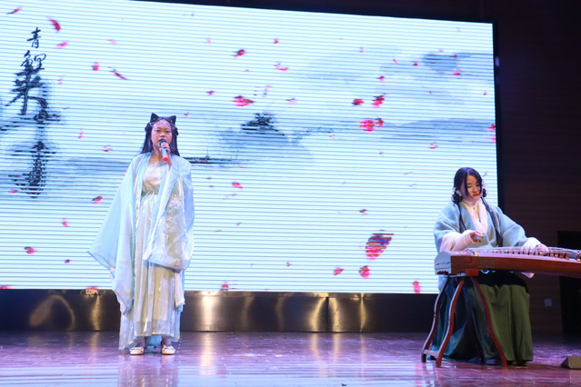 第三篇章:合唱华章。第三篇章以王可丁同学带来的秦腔开场,他将悠扬的旋律和深情的表演完美结合,令人陶醉其中。紧随其后是王淑慧同学带来的《惊鸿舞》,她的舞姿舒展而又优雅,展现了她对舞蹈艺术的独特理解。胡昊同学以动人心弦的歌声演绎了《水星记》,他的歌声如同一股清泉,流淌进人们的心灵深处。最后,全体师生共同合唱了一首《爱如海大》,歌声嘹亮而又饱含情感,使整个场馆都沐浴在团结和温暖的氛围中。