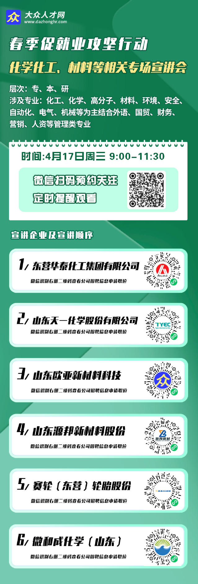 【化苑丨就业信息】春季促就业攻坚行动-化学化工、材料等相关专场宣讲会