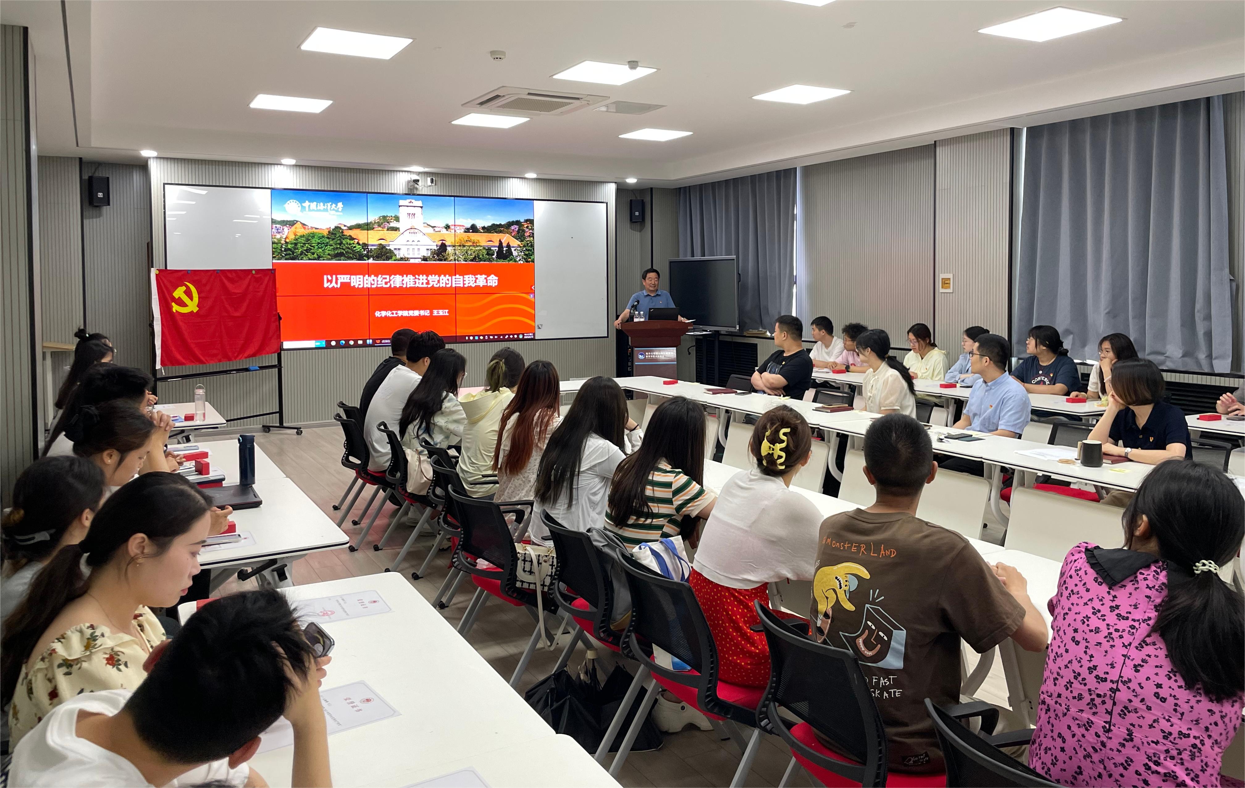 王玉江代表学院党委向全体受表彰的同志表示祝贺,向即将开启新征程的毕业生党员送上美好的祝福,并讲授题为《以严明的纪律推进党的自我革命》纪律党课。他结合学生党员违纪违法犯罪典型案例系统讲述了全面加强党的纪律建设的历程、党的十八大以来纪律建设取得的成效、《中国共产党纪律处分条例》修订及其实施效果、全面加强党的纪律建设的任务要求等内容。他指出,广大学生党员要坚定理想信念,践行党的宗旨,永远保持同人民群众的血肉联系,发挥党员的先锋模范作用,立鸿鹄之志,创一流业绩。