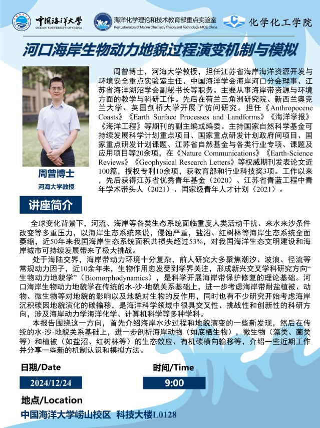 周曾教授报告:河口海岸生物动力地貌过程演变机制与模拟