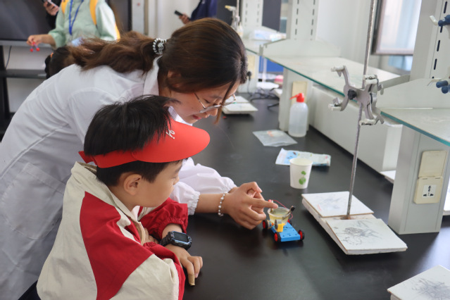 随后,孩子们来到趣味实验室。在志愿者的引导下,亲身体验化学实验的神奇。“水中花园” 与 “海底火山爆发” 等实验,让孩子们仿佛置身于奇妙的化学世界,在惊叹之余,对化学原理产生了更浓厚的好奇与探索欲。实验环节结束后,小朋友们一同走进化学工程与工艺实验室,参观各类化工专业仪器设备。志愿者为大家介绍仪器的功能与用途,让孩子们近距离感受科研的魅力,了解化学在工程实践中的应用。