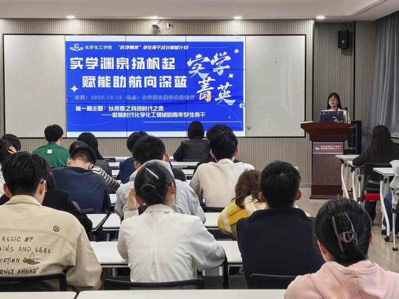 学生骨干是高校学生工作的“排头兵”,是连接学校、学院与广大学生的“桥梁纽带”,更是服务学生成长成才的“中坚力量”。为深入弘扬化学化工学院“实学渊泉”精神,全面提升学生骨干的综合素养与履职能力,学院团委于2025年10月正式启动“实学菁英”学生骨干成长赋能计划。10月16日下午,计划启动仪式暨首场主题培训在化学楼三楼学术报告厅顺利举行。学院党委副书记李新出席仪式并作开班动员,学院团委书记陶晓玲主持仪式。