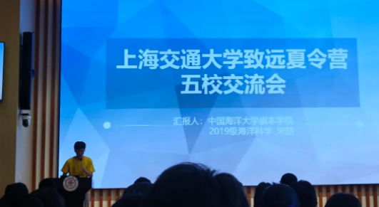 本次夏令营致远学院精心安排了多种类型的活动,交流、实验课、讲座、参观等。五校交流会由每个参与学校派出一位代表,分享各自学校的学习和生活,以增进对不同高校的了解。崇本学院由2019级学生宋喆进行了分享,他由青岛城市特色开篇,介绍了开云电竞网址及崇本学院的相关情况,并分享了在崇本学院的学习、科研、活动等等经历。