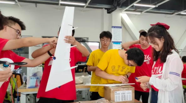 无人机课程让同学们分组亲自动手制作C919和轰6K飞机模型,并在课程最后,在大草坪上进行了试飞;
