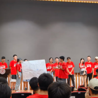 晚上18:30,夏令营举行破冰仪式,不同学校的学生组成5个队伍,通过几个游戏,迈出了从陌生到熟悉的第一步,整个会场气氛非常热烈。