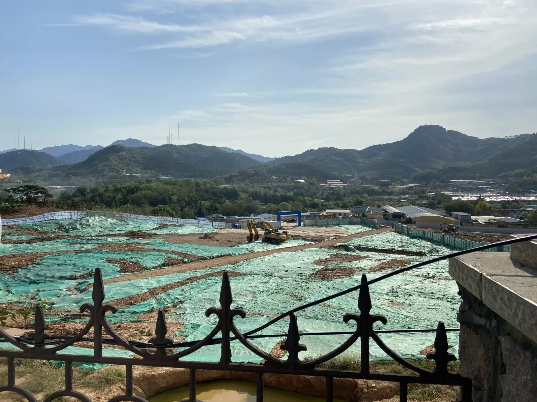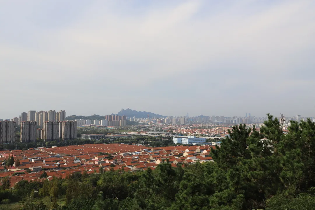 路一直走,山一路爬,景观一直在变化。登顶将军亭后,一路以来的工地、村庄、地铁线路、主干道,这些复杂的建筑已经难以分辨了。将军亭上远远望去,青岛的美丽风光尽收眼底。