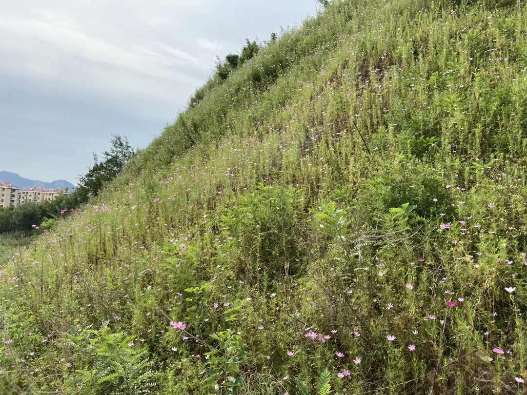 下山的路,是位于将军山西北方向的小路,不同于上山之路的景观,这条路让我们深感融入自然,尤其是末尾满山的波斯菊十分壮丽。