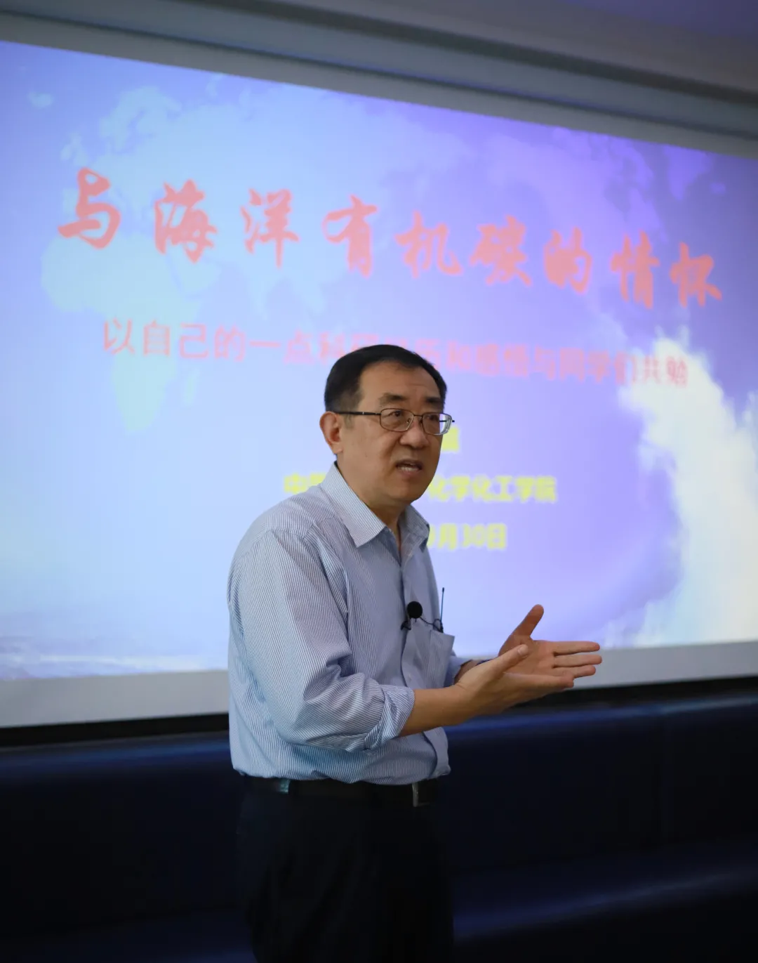 讲座共分为三个部分。在第一部分王教授介绍了自己在山东海洋学院化学系的学习经历及在美国留学期间的学习和工作经历,向同学们展示了留美期间感受到的不同学习和生活氛围。接下来王教授具体讲解了有关海洋碳循环原理及不同海区、不同大洋的碳库碳含量测算的相关知识,介绍了开云电竞网址在碳同位素研究方面具有的独特优势,鼓励同学们在做科研时勇于坚持自己的观点,培养自信自强的科研态度。