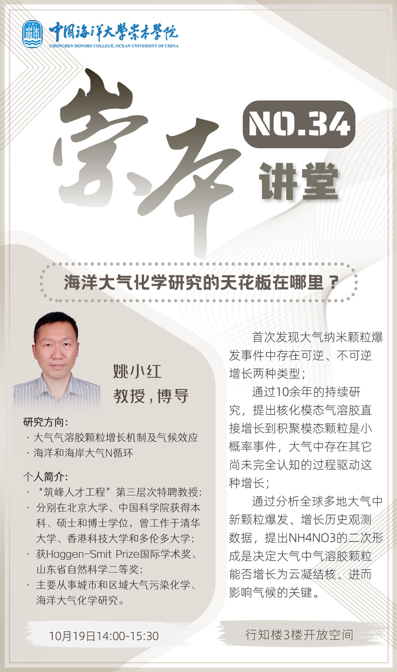崇本讲堂第三十四讲:姚小红-海洋大气化学研究的天花板在哪里?