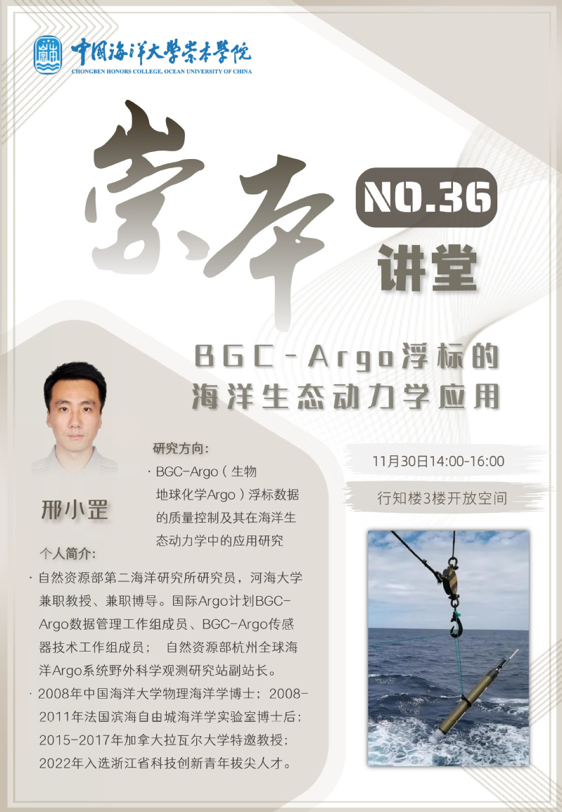 崇本讲堂第三十六讲:邢小罡-BGC-Argo浮标的海洋生态动力学应用