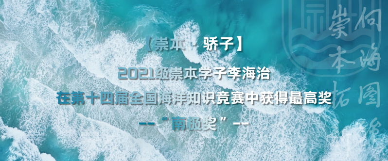 近日,第十四届全国海洋知识竞赛大学生组决赛在北京落幕,崇本学院2021级李海治以全场最高分获得该赛事最高奖项南极奖。