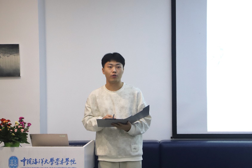 随后,第十四届全国大学生海洋知识竞赛“南极奖”获得者、2021级崇本学子李海治分享了在崇本学院学习、生活的点滴。海治提到崇本带给了他人生中很多个第一次,第一次通宵准备竞赛、第一次去剧院看话剧、第一次办理护照签证……充满挑战但温暖的崇本生活将成为他大学最珍贵的回忆。