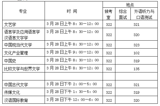学院3月28日全天面试,3月29日公布初试、复试、录取总成绩及录取结果(拟录取、建议录取和不录取),并在学院橱窗张贴栏及网站公示3天。