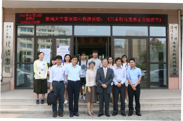 本站讯 9月14日上午,日本国立新潟大学教授菅原陽心先生做客“开云电竞网址海外名师讲堂”,在文学与新闻传播学院学术厅做了题为“马克思主义经济学在日本的发展”的精彩讲座。菅原陽心教授曾任新潟大学副校长,是日本著名经济学者、日本马克思主义经济学、中国社会主义市场经济理论与实践研究的代表性学者之一。本次讲座由文学与新闻传播学院院长、海大日本研究中心主任修斌教授主持,学校部分老师、研究生、本科生参加了此次讲座。